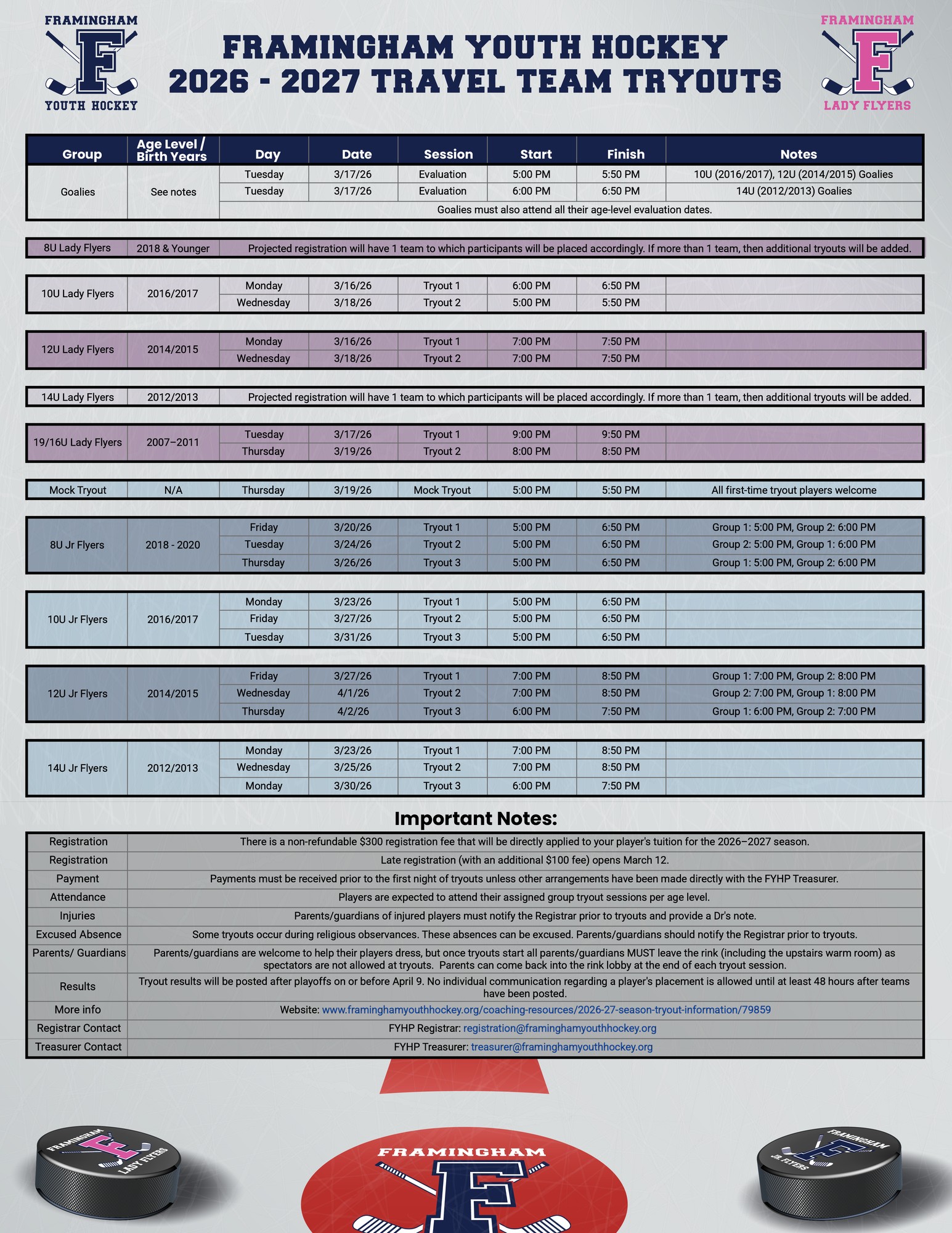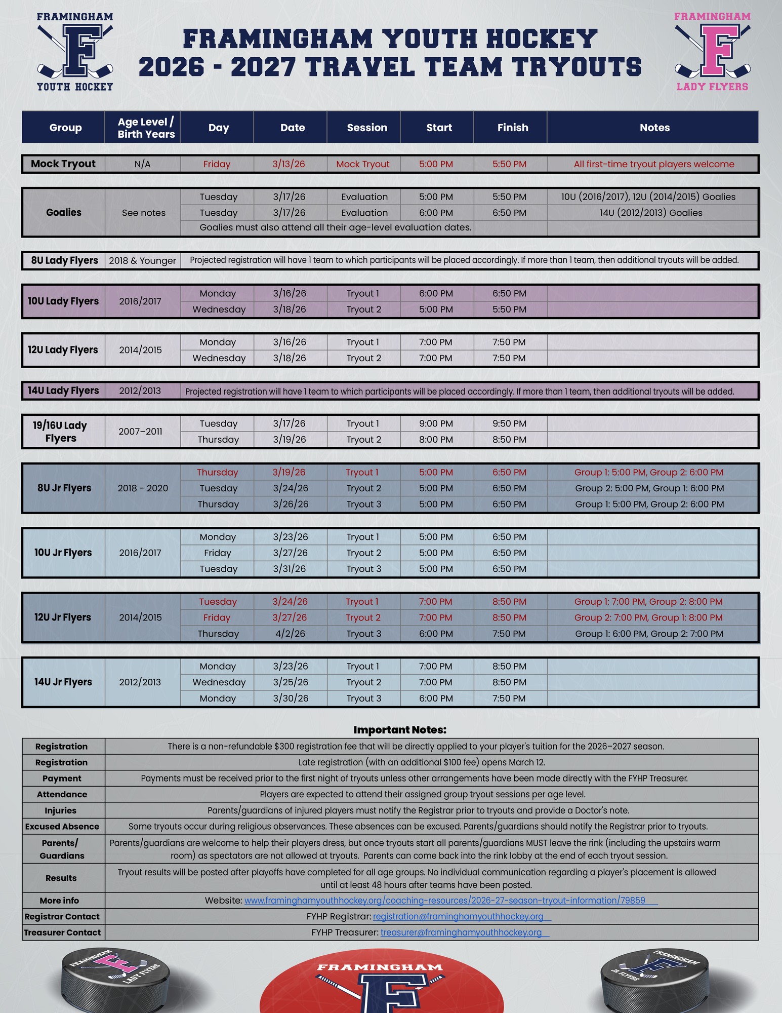 Please following the link below to register your Lady Flyer or Junior Flyer players for the 2026-2027 season.