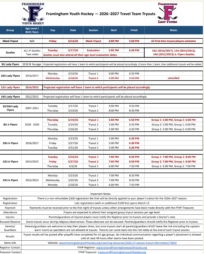 - 2026-27 Season Tryout Information