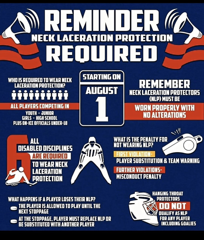 Be sure your skater wears their neck laceration protection whenever on the ice. FYHP players will not be allowed to practice or participate in games if they are not wearing it.
